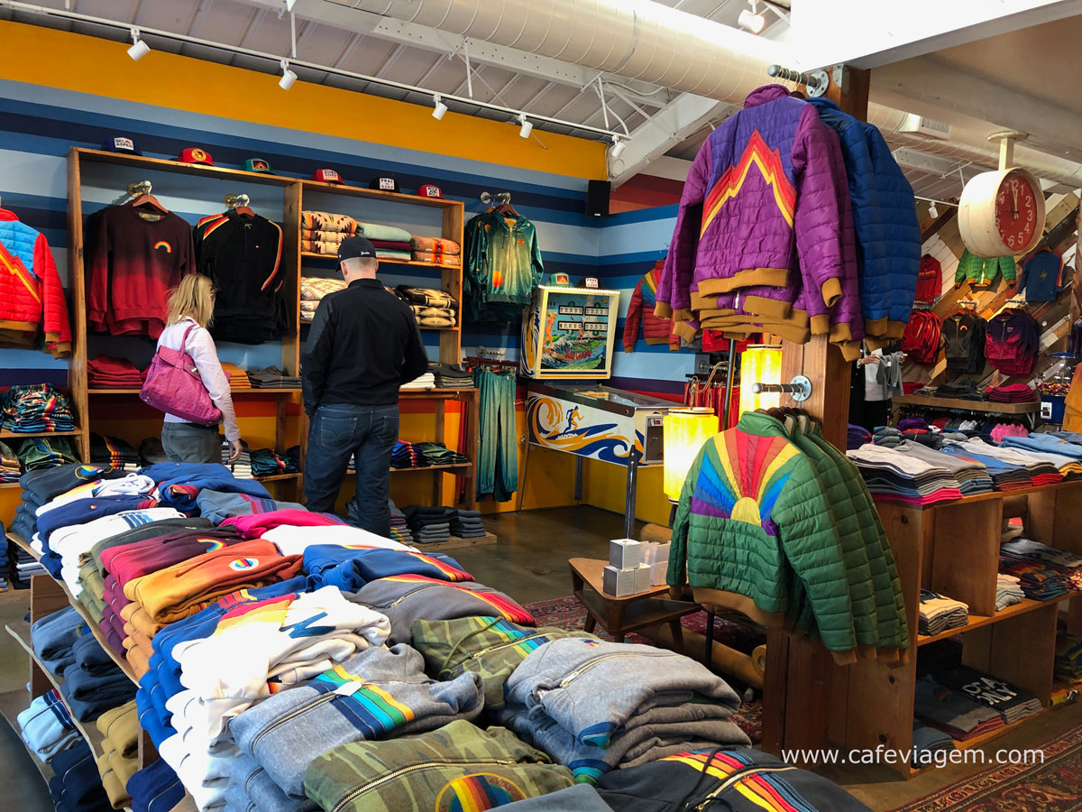 Uma das lojas mais famosas é a AVIATOR NATION (que tem a sua flagship store em Venice Beach. Nos fundos da loja há uma mesa de ping-pong – aproveite!  No final da rua, já na Venice Blvd, não deixe de visitar o supermercado chique de Los Angeles, o EREWHON MARKET (