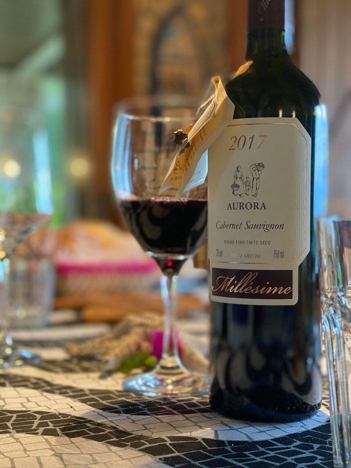 O Aurora Millésime Cabernet Sauvignon é um vinho ícone da Vinícola Aurora com preço médio de R$ 110. Merece ser degustado com um prato mais pesado de carne vermelha, molhos untuosos, massas com molho de queijo de sabores acentuados. Afinal, é um vinho encorpado, que passou por 18 meses em barricas de carvalho americano.