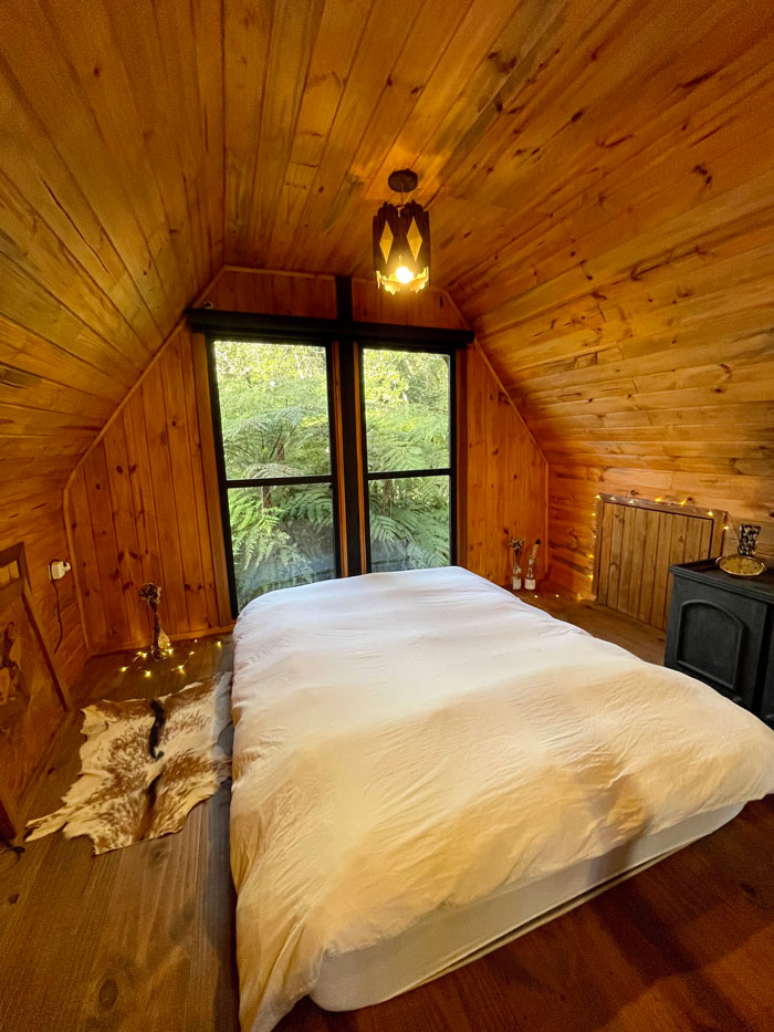 E é nessa cidade encantadora que encontramos a Cabana Fox Farm Hill. Um lugar simples, mas cheio de originalidade. O destaque aqui fica por ser uma cabana no meio da natureza que não possui internet e nem televisão. Diferente de todas as outras onde estivemos, não indicamos esta cabana para home office. No entanto, indicamos fortemente para quem busca se desconectar. E se conectar com o que realmente importa: você mesmo e o tempo presente.