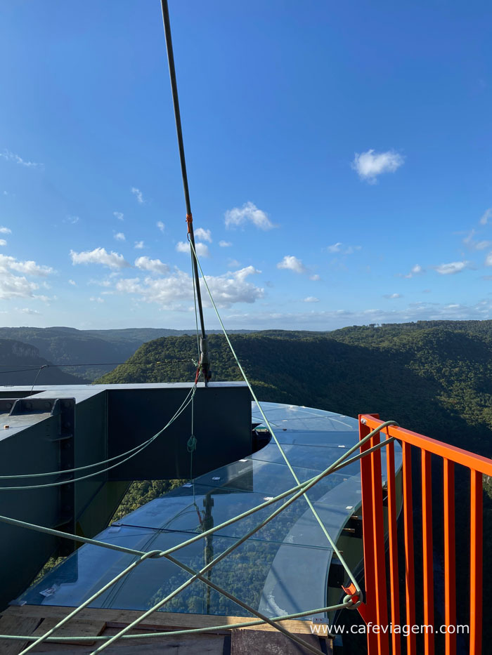 O Skyglass Canela avança 35 metros sobre o vale nessas duas formas de contemplação da natureza. Trata-se da maior plataforma do mundo avançando para dentro de um cânion. Uma passarela semelhante ao Grand Canyon nos Estados Unidos. Os cabos de aço vieram da Suíça.