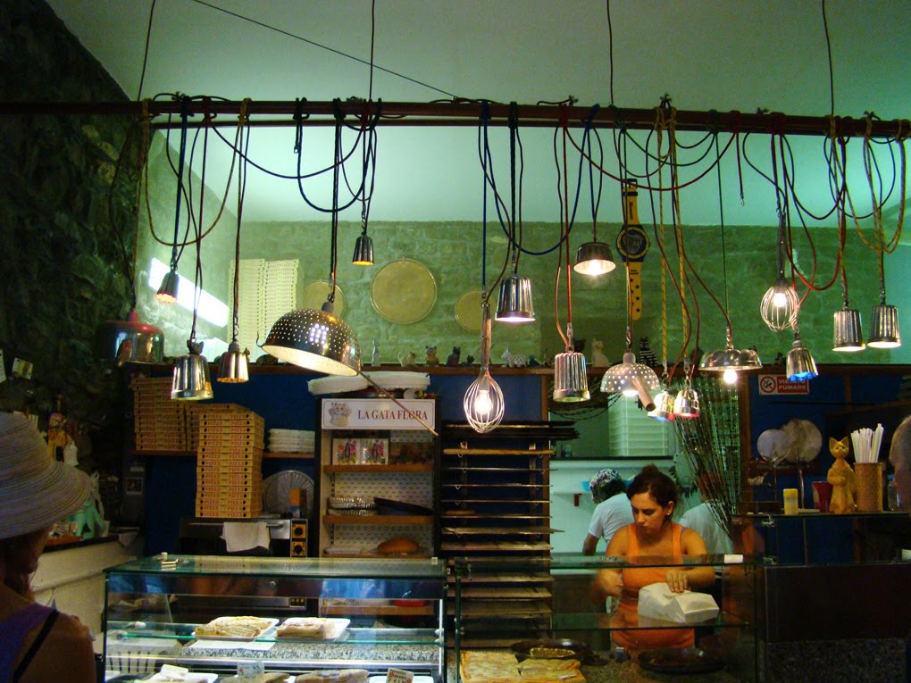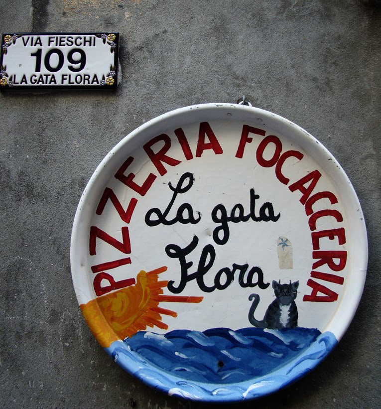 Corniglia é uma das 5 comunas que compõem Cinque Terre na costa da Liguria. Trata-se de uma vila tranquila, debruçada sobre uma falésia impressionante, e é a única cidade sem acesso ao mar. Para chegar à cidade você tem que subir uma looonga escadaria de tijolos conhecida como “Lardarina”, com 377 degraus. É cansativo, principalmente se, como a gente, já tiver caminhado a Via dell’Amore. Mas é lindo. Vale muito a pena. A gente fez todo esse trajeto e é simplesmente maravilhoso. A cidade é uma graça: cheia de casinhas coloridas, velhinhas na varanda, plantações de uva e uma vista mais linda que a outra. E foi caminhando de ruazinha em ruazinha que descobrimos a La Gata Flora. Uma pizzaria muito charmosa (como a maioria dos lugares em Corniglia), com uma decoração super legal e umas pizzas simplesmente deliciosas. O lugar é bem pequeno com pouquissímos bancos altos pra sentar. A dica é comprar suas fatias preferidas, sua bebida e subir mais alguns degraus de qualquer escadaria perto dali pra almoçar olhando o mar da Ligúria…ai, ai!
