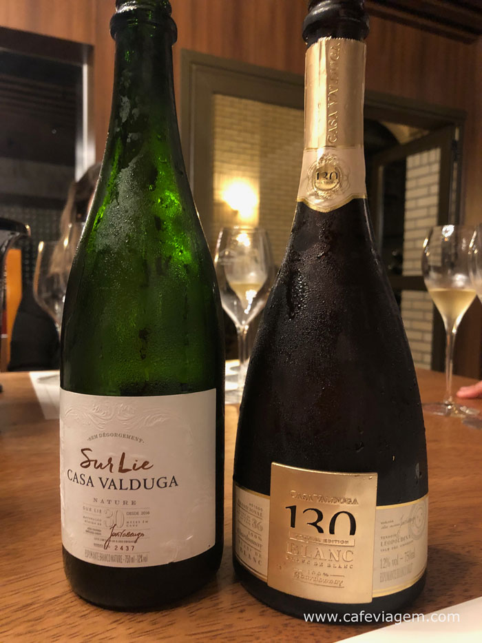 Pelo entusiasmo na fala, deu pra sentir que o espumante Nature Sur Lie Valduga é um de seus favoritos. Trata-se de um espumante em sua forma mais bruta, sem dégorgement e consequentemente, sem dosagem pós-dégorgement de licor. Demonstra bem a inovação do vinho brasileiro, segundo o Master of Wine britânico.