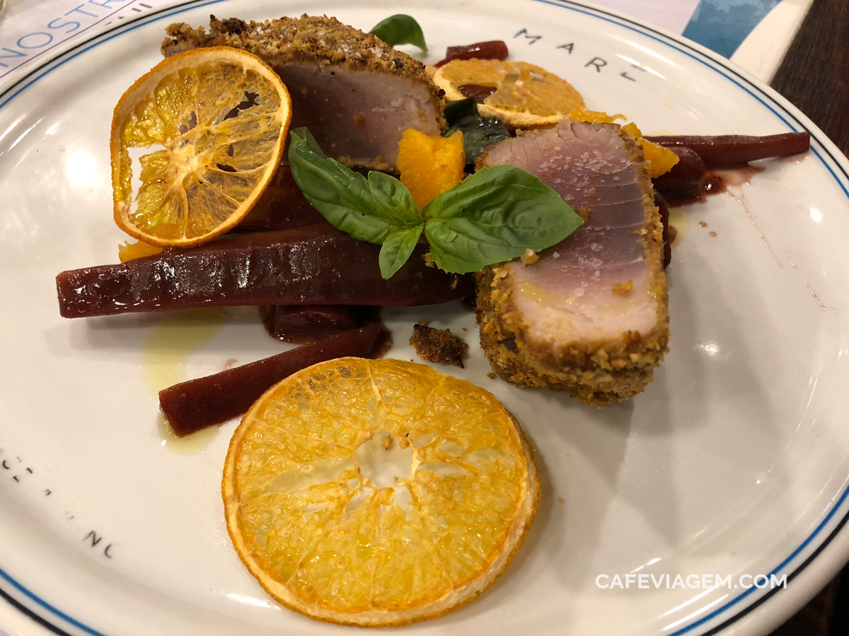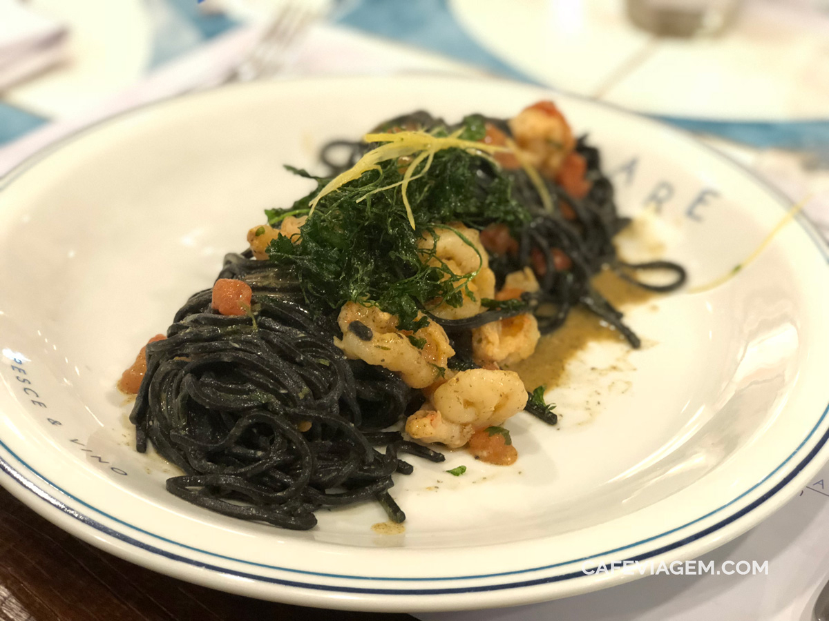 No entanto, já vou avisando: a espera para conseguir uma mesa nos restaurantes do Eataly pode ser bem demorada, ainda mais se for fim de semana ou feriado. O serviço também é demorado. Nós aguardamos quase uma hora para ser servidos no restaurante de frutos do mar, o Mare. Ou seja, é preciso muuuuuita paciência. Em contrapartida a demora, os pratos que provamos e o vinho branco estavam ótimos. Fica a dica: Pinot Grigio Barone Montalto (bom custo-benefício, R$ 73). A conta com vinho, água e 3 pratos principais foi R$ 300