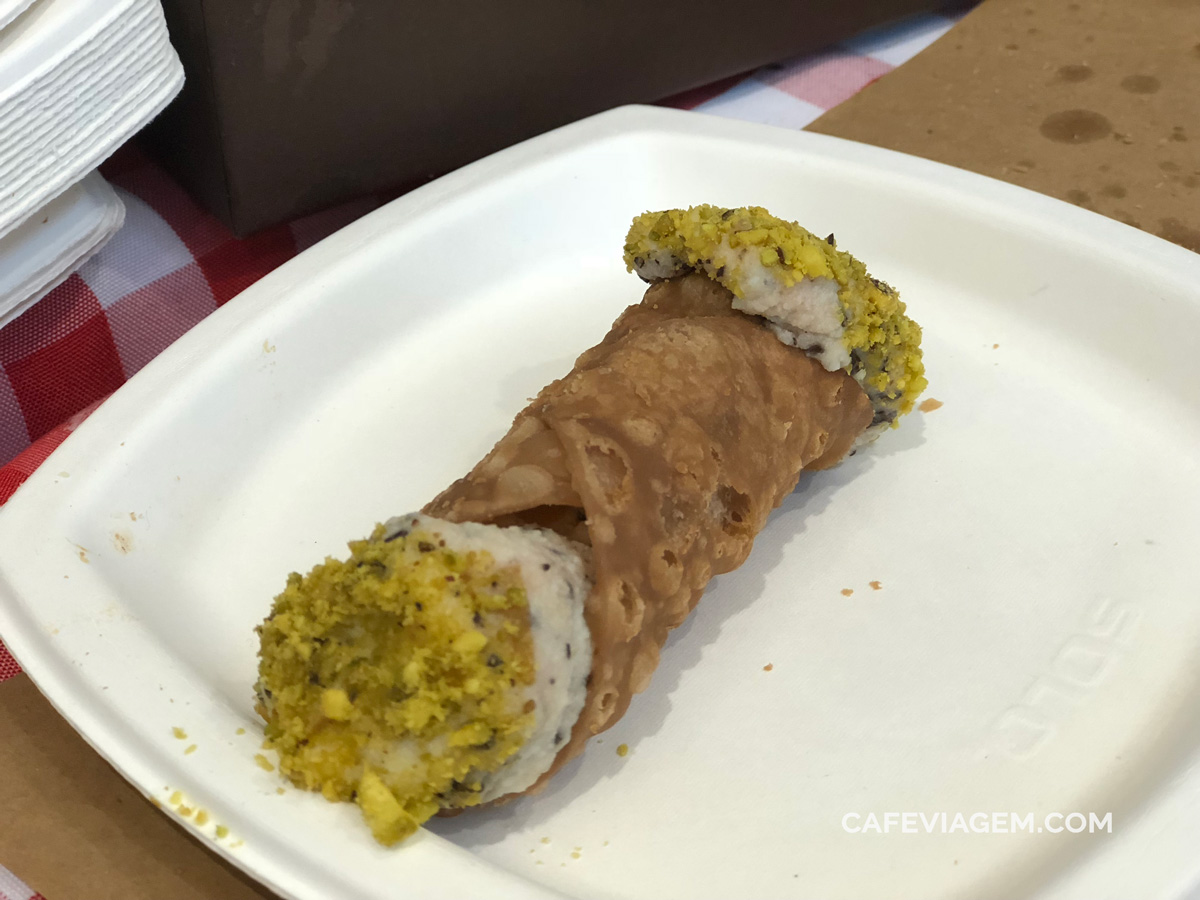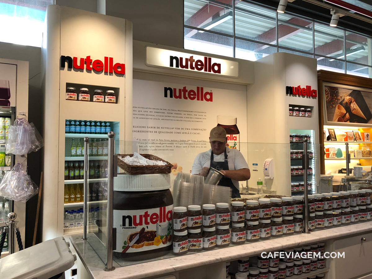 A sobremesa, deixamos para provar as delícias oferecidas no mercado. Como o cannoli italiano. Aviso: há uma estação só de Nutella.