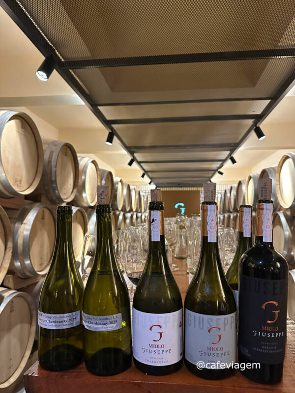Fiz o Tour Giuseppe Miolo que inicia com uma super degustação do espumante Miolo Millésime. Seu diferencial é mostrar a evolução tecnológica da vinícola. Para isso, o percurso inicia com as pipas de grápia, passando pelos tanques de aço inox, ovos de concreto e as barricas de carvalho francês. Degustamos ao longo da visita 6 taças, com destaque para os vinhos brancos e o Chardonnay da linha Giuseppe ” descontruído”.