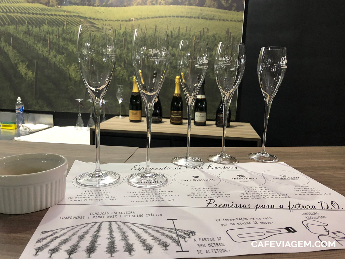 Degustação do Terroir de Pinto Bandeira: o estande de Pinto Bandeira promoveu degustações de 5 rótulos das diferentes vinícolas situadas em sua região reconhecida pelos excelentes espumantes em método tradicional.