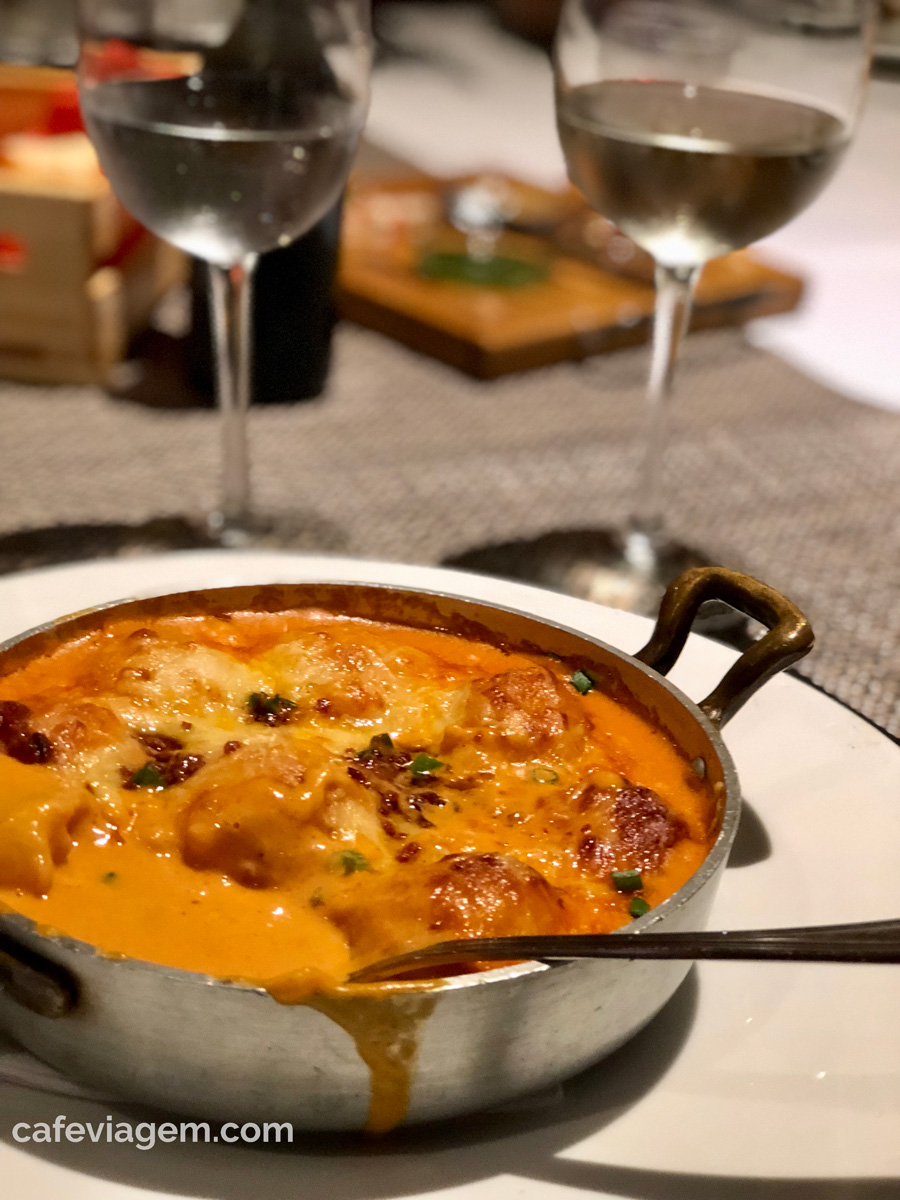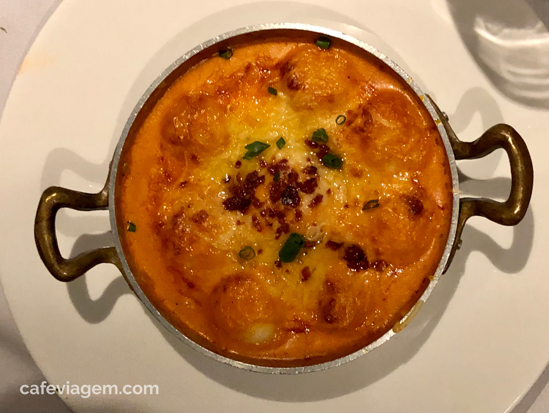 Eu pedi uma das sugestões da casa, prato famoso do restaurante Francis: Gnocchi rellenos com gruyere e mozzarela. Pensa em bom e multiplica. Adorei. Se a fome não for grande, dá para dividir tranquilo este prato de nhoque.