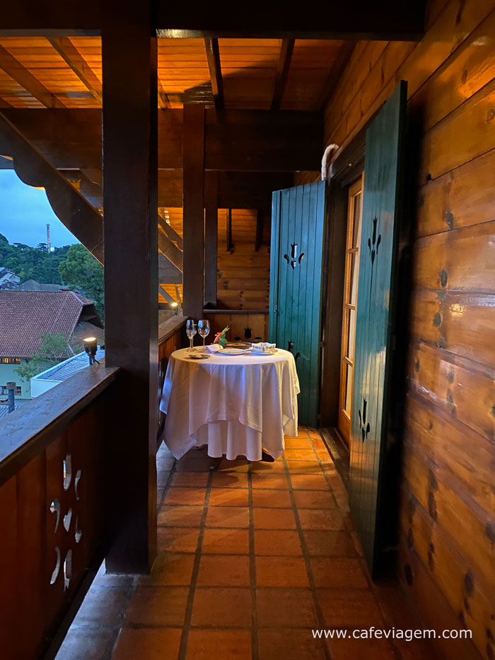 Jantar na varanda da suíte Casa da Montanha