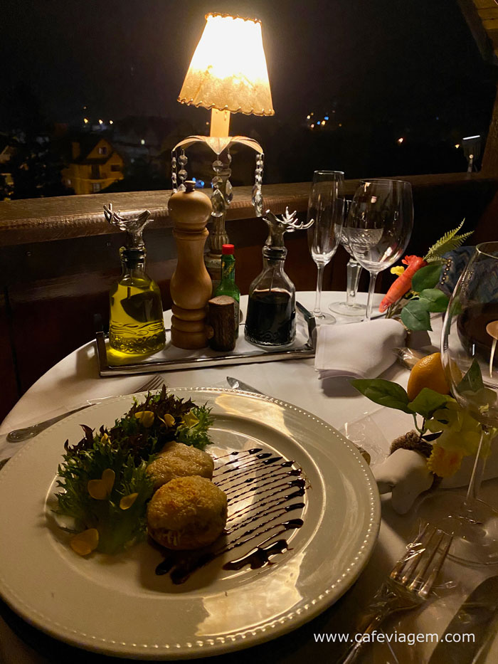 Pratos principais são individuais e custam entre R$ 100 a 160 (valores em 2021). O jantar na varanda da suíte tem custo extra de experiência temática. Partiu, namorar!