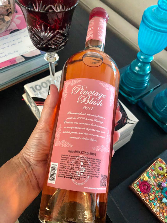 A vinícola boutique Casa Marques Pereira tem quatro linhas de vinhos e espumantes, elaborados pelos enólogos Marcos Vian e Anderson Schimitz. Ganhei de presente um Pinotage Blush Rosé. Já me apaixonei de cara pelo rótulo. A Pinotage é uma uva tinta rara na serra gaúcha. Trata-se do cruzamento da Pinot Noir e da Cinsault, uva bem utilizada e conhecida na África do Sul. A garrafa do Pinotage da Casa Marques Pereira custa R$ 69,00 (em dez 2019). Vinho jovem, floral e frutado. Delicado e fresco, harmoniza fácil com vários pratos.
