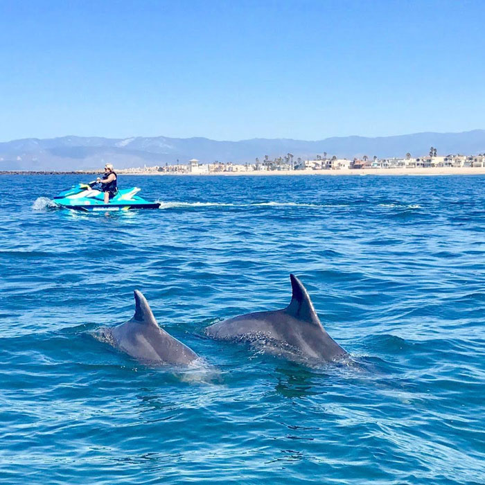 - os golfinhos em Chanel Island Harbor vistos do jet ski – Foto Instagram @socalijetskis