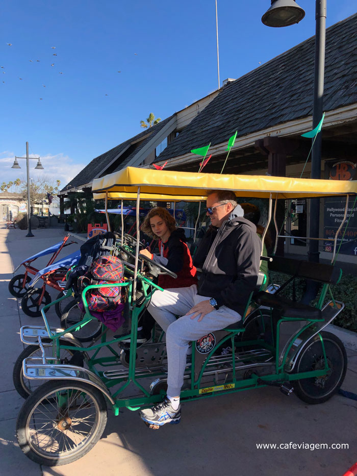 E como curtir a praia no inverno na Califórnia? Pergunte-me como. Fomos visitar uma marina em Channel Island Harbors (Hollywood Beach). Por lá, encontramos uma bela marina com restaurantes e passeios de barco elétrico, bicicletas e jet-ski. Coloque no GPS Marina Emporium Landing ou Southern California Jet Skis.