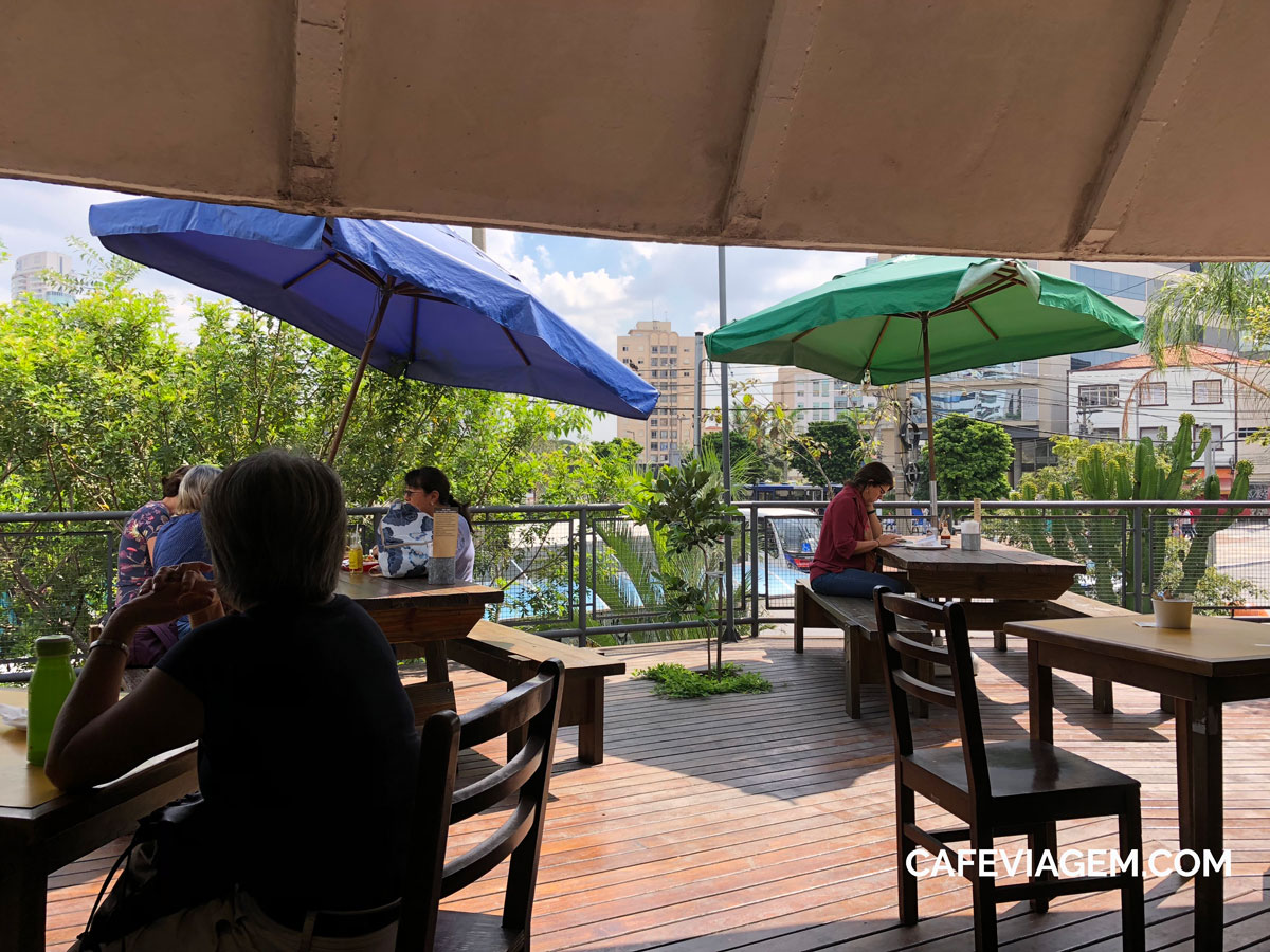- mesas ao ar livre do Mercado de Pinheiros de São Paulo