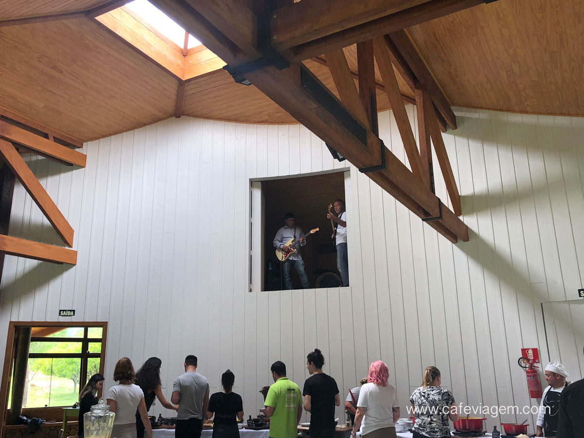 Enquanto a gente almoça no Monã, a banda de Blues toca numa espécie de janela na parede. Nos dias de sol, o almoço e show acontece ao ar livre
