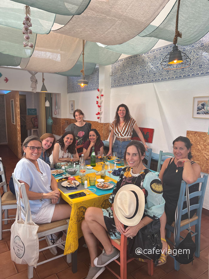 Após a degustação, teve passeio com nossa super Guia Fabi Zavatta que nos levou ao Cabo da Roca, ponto mais ocidental de Portugal e da Europa continental. Vista deslumbrante. Próximo ao Cabo da Roca, nosso almoço nos aguardava com mesa reservada na Casa do Mar Dem Fim. Um banquete colorido com sangria e a melhor amêijoa que comi em toda a viagem.