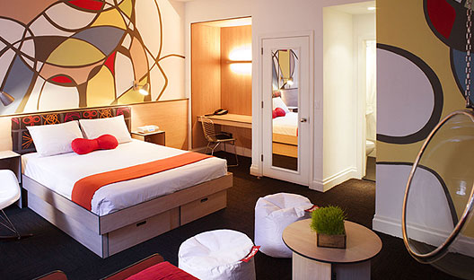 Na categoria hotéis baratos com design. Vi as fotos e adorei. Igualmente para jovens ou pessoas com espírito jovem. Eu ficaria certo. Está no livro que já postei aqui, o Taschen New York