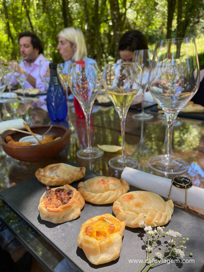 No espaço do jardim da vinícola Cave Geisse, o Open Lounge, é possível pedir petiscos incríveis e fazer uma refeição descomplicadas com tábua de frios e empanadas chilenas. E, é claro, harmonizar com os maravilhosos espumantes da vinícola. Minha sugestão são as empanadas de carne (bem picante) e a de gorgonzola com cebola caramelada. No Open Lounge Caisse são oferecidos todos os espumantes e vinhos em taça da Família Geisse, exceto o Terroir Nature que é vendido somente na Garrafa (R$ 170). No menu também há clericot, suco, café e drinks como o Aperol Spritz.