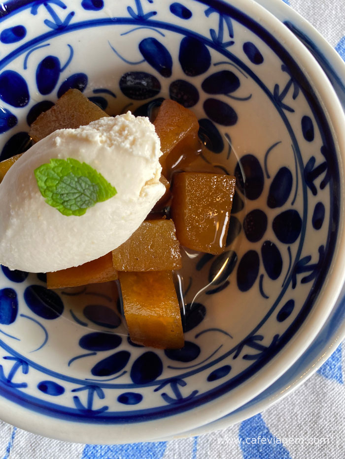 Dos doces, provamos o imbatível pudim da vó e um doce de abóbora no almoço. Feito com queijo curado. E ainda, a Nega Maluca, bolo de chocolate com brigadeiro e com a companhia inusitada de um sorvete de mate doce.