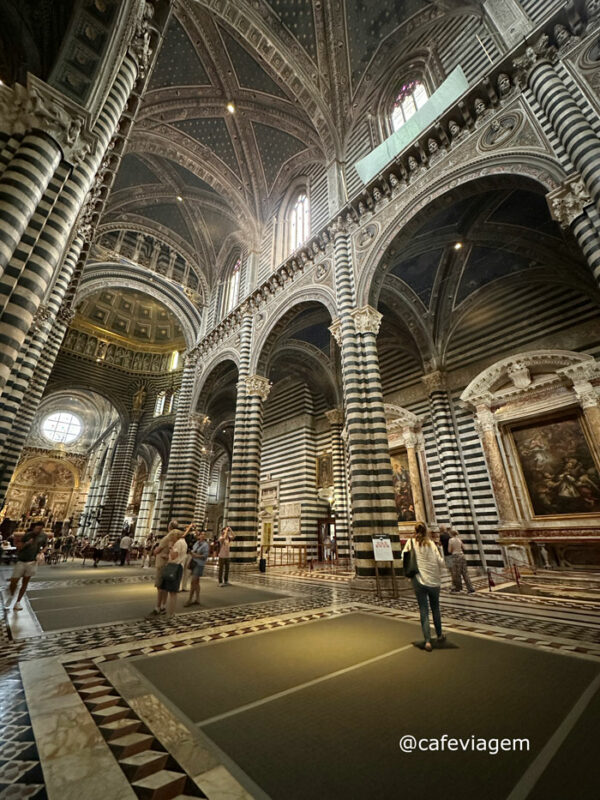 Visitar a Catedral de Siena (Duomo di Siena) é uma experiência que marca qualquer viagem pela Toscana. À primeira vista, sua fachada em mármore já impressiona. Siena se orgulha – e com razão – de ter uma das catedrais mais lindas e ricas artisticamente da Itália. Do piso ao teto, dos vitrais às esculturas, tudo tem uma beleza estonteante. Neste post do Café Viagem, conto um resumo da nossa visita, ingressos e tudo o que você precisa saber para aproveitar ao máximo esse passeio.