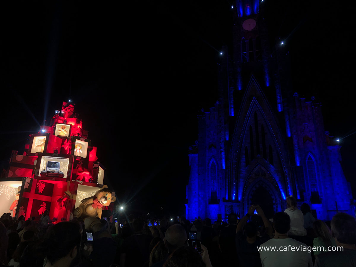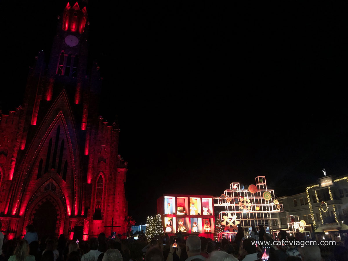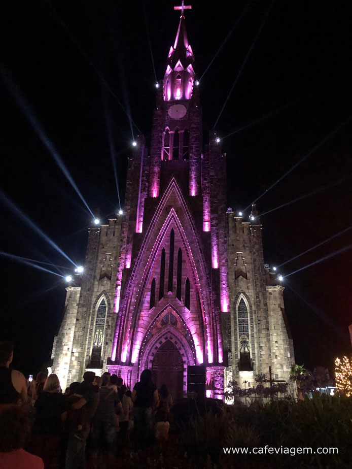 A Igreja Matriz Nossa Senhora de Lourdes, mais conhecida como Catedral de Pedra de Canela, é palco de um show diário que sincroniza música e efeitos de iluminação na fachada e nos ornamentos natalinos. O ápice do show é a visão do Papai Noel do alto da torre que não sá abana para o público como também desce a igreja fazendo rapel.