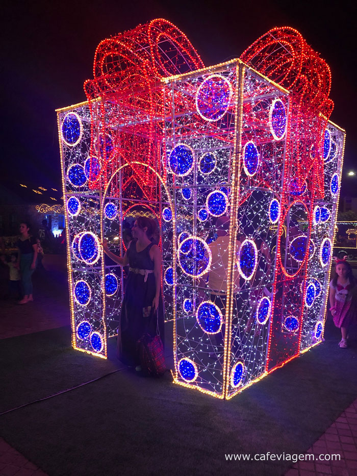 Os principais pontos com decoração e iluminação de Natal para fotos são: