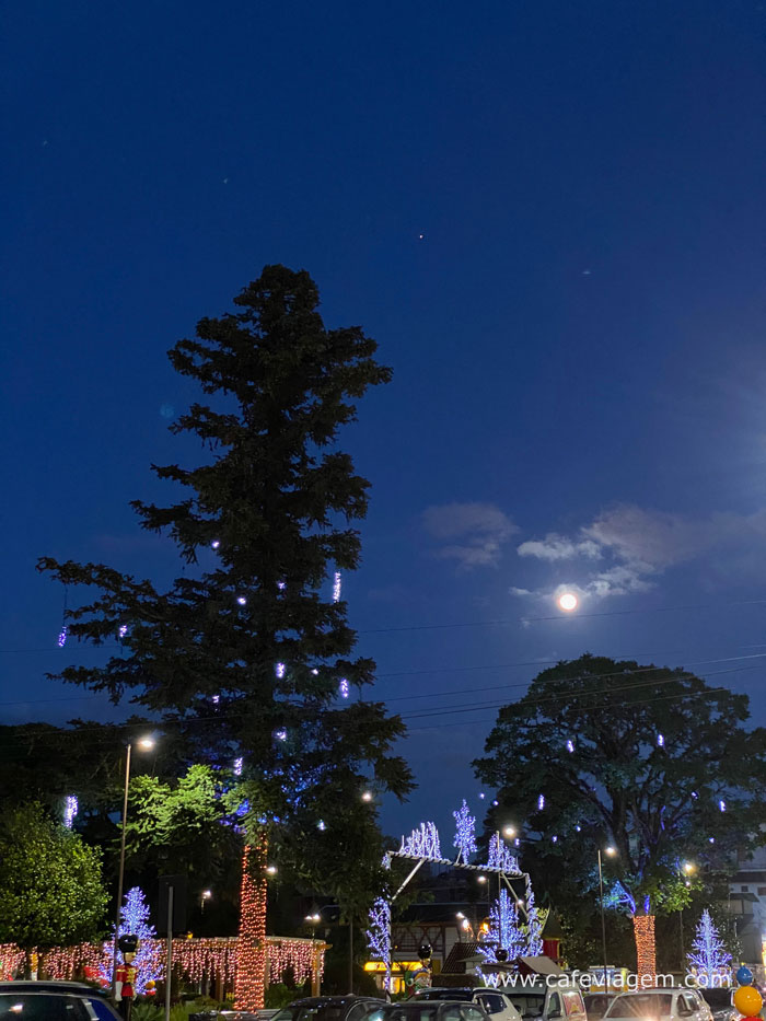 Fomos recebidos pela Secretaria de Turismo de Canela que nos contou sobre o desafio de fazer o Sonho de Natal de Canela no ano da pandemia. A grande atração deste ano é a contemplação da decoração e iluminação da cidade. A decoração principal está na Praça João Corrêa (a praça principal em frente à Estação Campos de Canella), na rua principal e no cartão postal da cidade, a Catedral de Pedra.