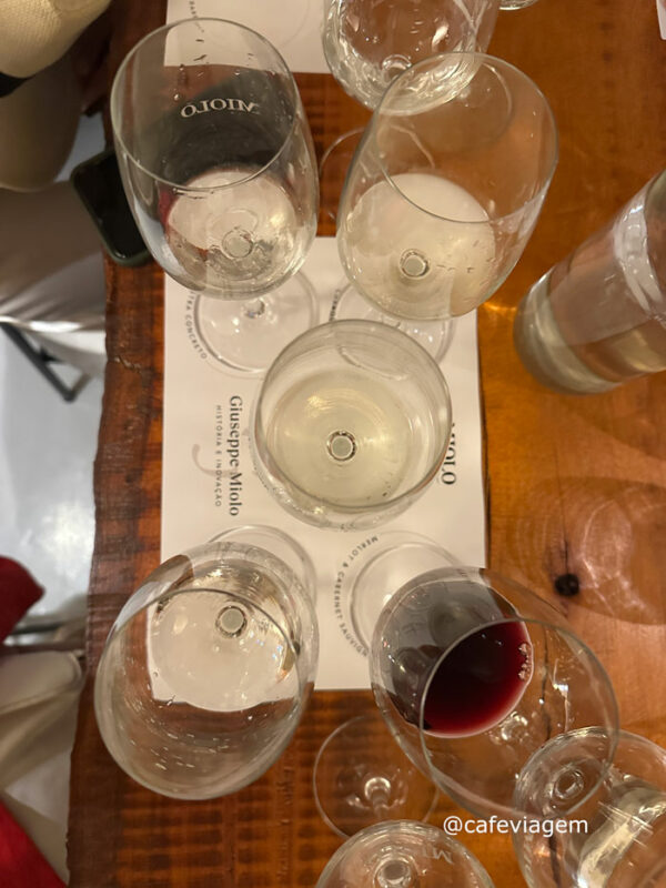 Por fim, na Cave das Barricas, degustamos mais dois rótulos excelentes da linha Miolo Giuseppe: o Semillon, elaborado na Campanha Central, e o tinto Miolo Giuseppe Merlot/Cabernet Sauvignon DOVV.