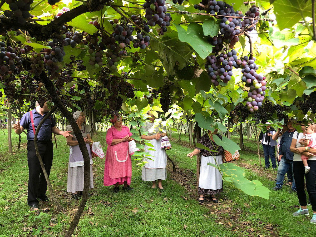 A Colheita e Pisa da Uva da Vinícola Cainelli foi a nossa primeira parada. Para muitos, a grande favorita de todo o roteiro por sua autenticidade e emoção. A família Cainelli apresenta a bela propriedade e os costumes dos seus descendentes italianos, imigrantes que chegaram em terras gaúchas em 1870 e espalharam a cultura do vinho. Neste post do blog você pode ler mais sobre a Cainelli!