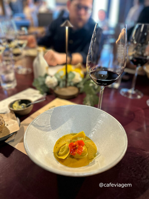 - tortelini com pirarucu, creme de banana e moqueca (aqui harmonizaria com um branco ou espumente)