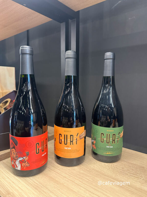 O rótulo Guri é 100% Pinot Noir, de caráter mais jovem. É sempre o primeiro rótulo a ser lançado do ano, o guri da família. Estagia 6 meses em barrica de carvalho, tinto cheio de leveza.