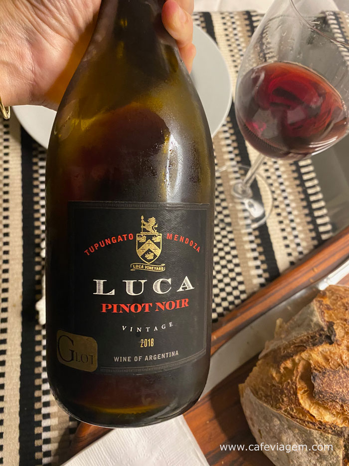 No entanto, o tinto argentino que nos surpreendeu foi o Pinot Noir Luca 2016. Alguém nos deu de presente e ainda não descobrimos quem foi. Um pinot elegante, intenso em aroma de frutas negras e cereja. Um projeto de Laura Catena (leia-se, família Catena).