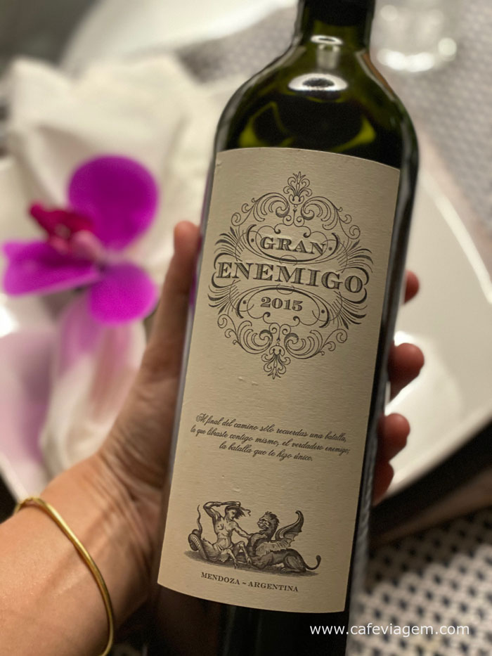 Dos tintos argentinos, abrimos dois vinhos que trouxemos de Mendoza: o Gran Enemigo 2015 e um Gran Cabernet Franc XI 2013 da bodega Pulenta. Ambos vinhos emblemáticos para beber ajoelhado e rezando!