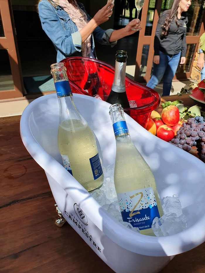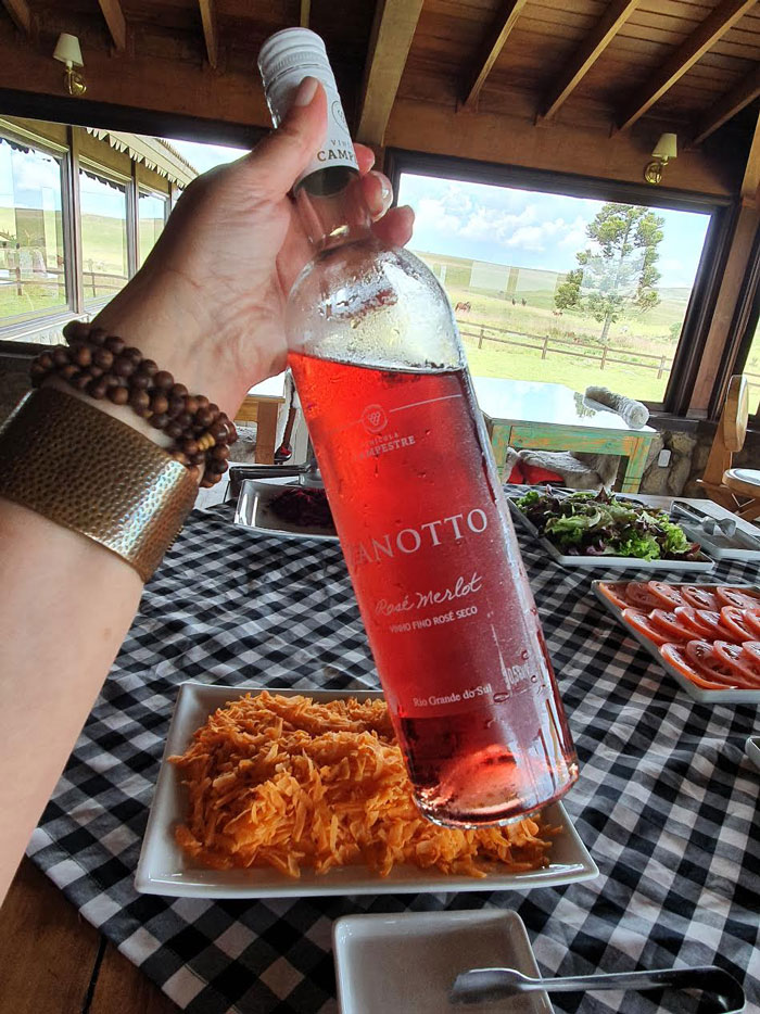 Foi durante o almoço que degustamos alguns dos rótulos que a vinícola elabora, como o rosé Zanotto, o Sauvignon Blanc, o Chardonnay e o tinto Malbec. Também provamos os espumantes. Além dos sucos, a vinícola também produz vinhos das uvas tintas Syrah, Pinot Noir Cabernet Sauvignon e Tannat. E da branca Gewurztraminer.